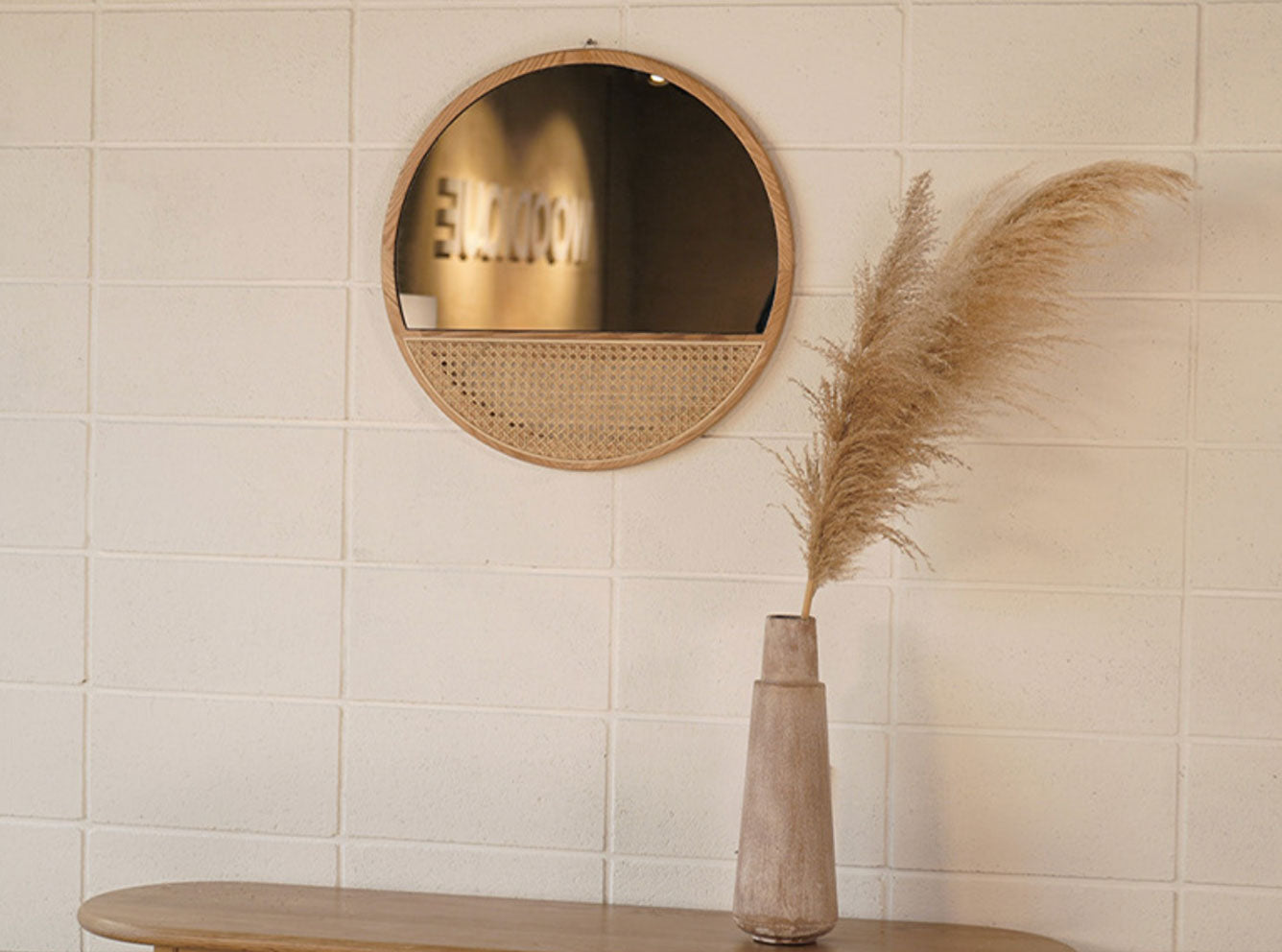 A perfect addition to a natural style home, this mirror features a beautiful solid oak frame and a rattan bottom. It's functional for the foyer area while being suitably decorative.