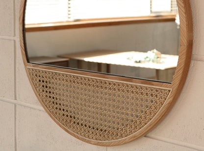 Solid Wood Rattan Mirror